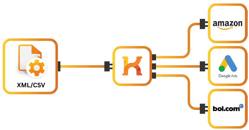 Το Koongo αυτοματοποιεί τη διαχείριση των τροφοδοσιών προϊόντων σας συγχρονίζοντας τις καταχωρίσεις σε όλα τα συνδεδεμένα κανάλια πωλήσεων. Τα δεδομένα σας παραμένουν συνεπή και ακριβή σε όλα τα κανάλια, μειώνοντας τη χειροκίνητη εργασία και τα σφάλματα.